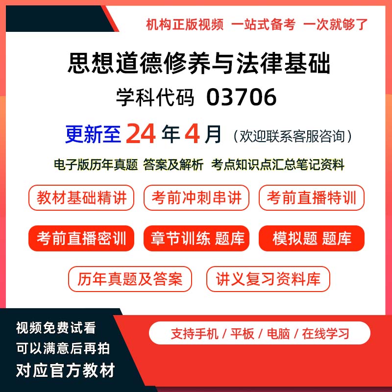 思修 2024年11月1日 03706思想道德修养与法律基础自考历年真题试卷和网课视频电子版(2024最新) 作者 zhen_ti 标签思修 文章导航 下一篇文章下一个 12656毛概中特毛邓三自考历年真题试卷试题考试和网课视频电子版(2024最新)