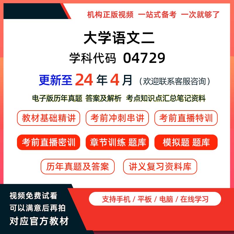 语文 2024年11月1日 04729大学语文二自考历年真题试卷试题送考试密训网课视频电子版 作者 zhen_ti 文章导航 上一篇文章上一篇 04730电子技术基础三自考历年真题试卷试题和密训网课视频电子版